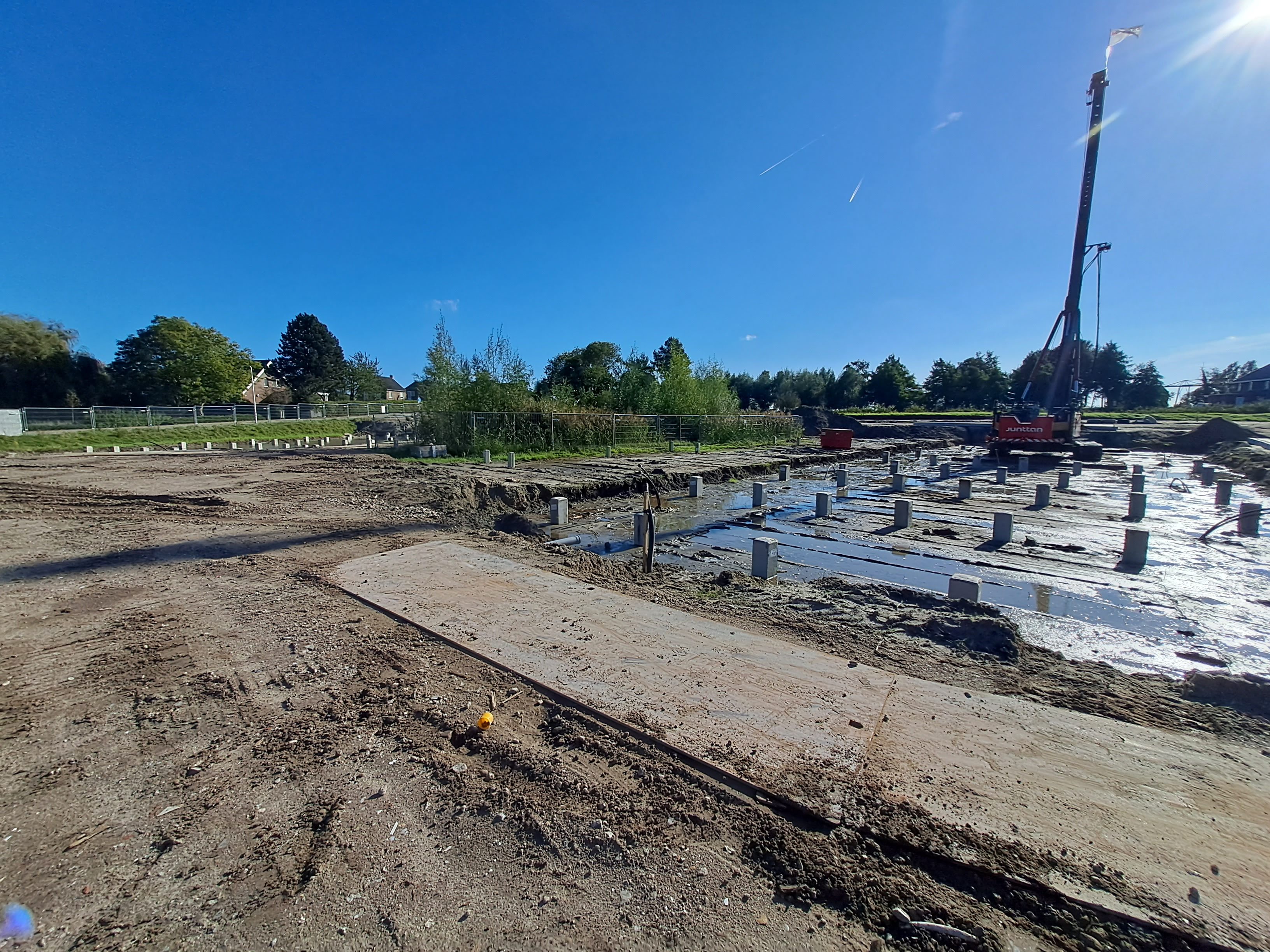 Deze week is er gestart met het boren van de bronnen voor de warmtepompen voor de woningen uit fase 1. Dit gaat enkele weken in beslag nemen. Hierna gaan we verder met het bouwrijp maken van het terrein.