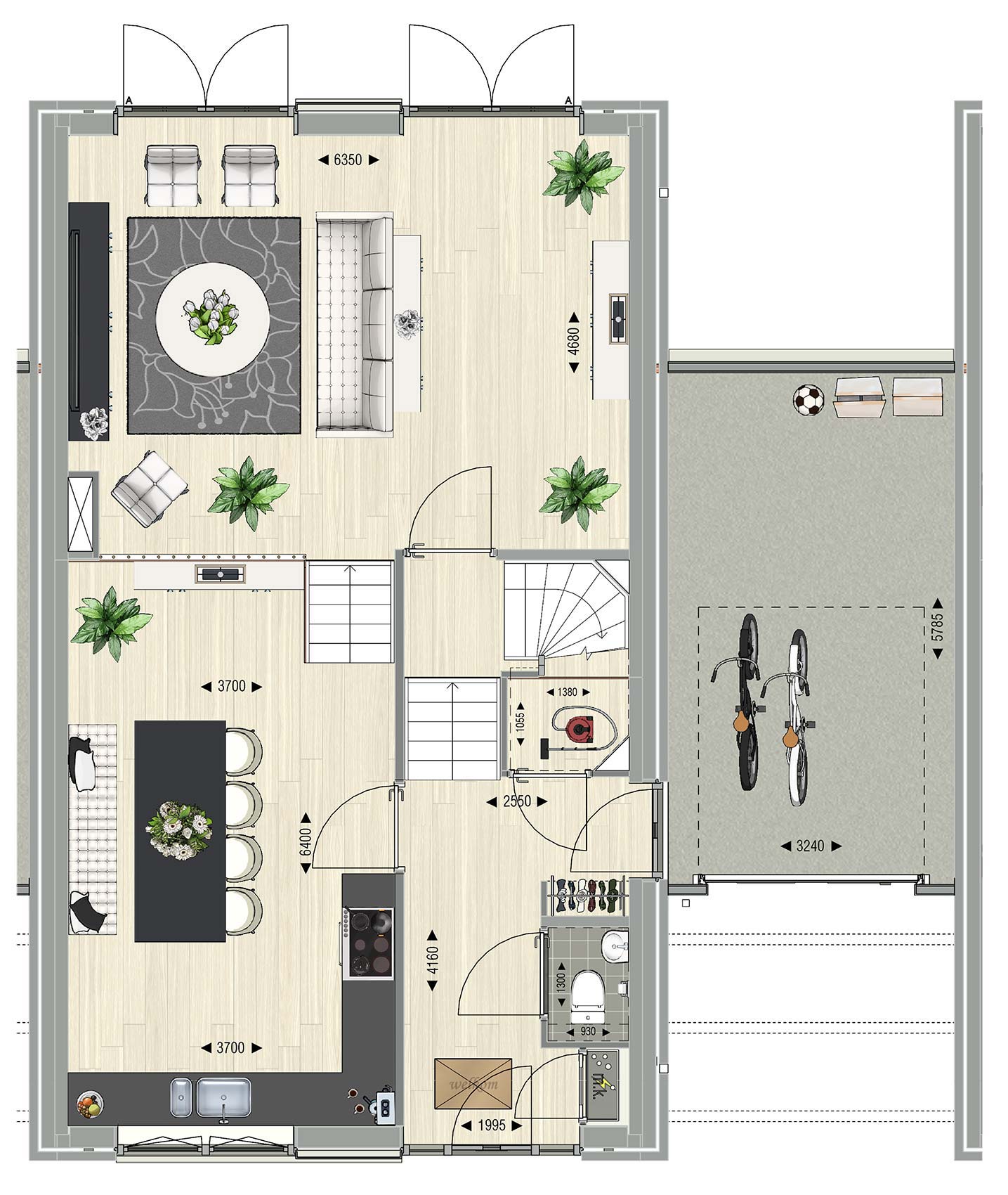 Bouwnummer 4 heeft als ‘schakel’ naar de watervilla’s van type Vrijheid II een extra ruime garage en extra brede achtertuin van maar liefst ca. 13 meter breed.
